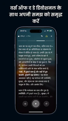 डिक्लेयर बाइबल के भीतर, आप शास्त्र के किसी भी पद को अपनी आवाज़ में बोलकर जीवंत और सक्रिय वचन में बदल सकते हैं, उन्हें अपने जीवन में ला सकते हैं। अनुभवी आध्यात्मिक अगुवों द्वारा दी गई शक्तिशाली दैनिक घोषणाएँ आपके हृदय को स्वर्ग से जोड़ती हैं और वातावरण को बदल देती हैं। हर दिन एक अनोखे अनुभव के साथ आता है, जहाँ दिन का पद सावधानी से चुने गए संगीत के साथ घुल-मिल जाता है – चाहे वह विश्राम की धुन हो या विजय का गीत, जो आपको सीधे ईश्वर की उपस्थिति में खींच ले। अपनी विशिष्ट आवश्यकताओं के लिए, जैसे वित्त, संबंध, भावनात्मक चंगाई या जीवन का उद्देश्य, डिक्लेयर बाइबल आपको कस्टम घोषणाएँ उत्पन्न करने की सुविधा देता है, जो सीधे ईश्वर के वचन से निकली हैं।