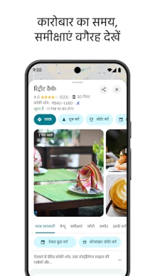 कहीं भी जाने से पहले, उसकी पूरी जानकारी पाएं! स्ट्रीट व्यू की मदद से आप पार्किंग या प्रवेश मार्ग जैसी बारीकियाँ पहले ही देख सकते हैं। इमर्सिव व्यू के साथ, किसी भी लैंडमार्क, पार्क या रास्ते का नज़ारा देखें और मौसम की स्थिति जानकर अपनी यात्रा की बेहतर तैयारी करें। अपनी पसंदीदा जगहों की कस्टम सूचियाँ बनाकर उन्हें दोस्तों और परिवार के साथ साझा करें। रेस्तरां से खाना ऑर्डर करें, टेबल बुक करें या होटल का आरक्षण करें – सब कुछ आपकी उंगलियों पर। सिग्नल कमजोर होने पर भी ऑफ़लाइन मैप्स की सुविधा से निश्चिंत होकर यात्रा करें और स्थानीय आकर्षणों को उनकी समीक्षाओं और तस्वीरों के साथ खोजें, ताकि आप सर्वोत्तम अनुभव का चुनाव कर सकें।