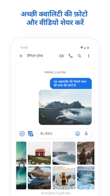Google Messages के साथ अपनी बातचीत को एक नया आयाम दें। अब आप बेहतरीन गुणवत्ता वाली तस्वीरें और वीडियो सहजता से साझा कर सकते हैं, अपने प्रियजनों को टाइप करते हुए देख सकते हैं, और जीवंत ग्रुप चैट्स का भरपूर आनंद ले सकते हैं। iPhone उपयोगकर्ताओं से भी जुड़ना उतना ही आसान हो गया है, जिससे सभी के साथ एक समृद्ध और निर्बाध संवाद संभव है।