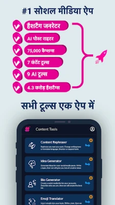 सिर्फ कैप्शन और हैशटैग ही नहीं, हैशटैग्स एआई एक संपूर्ण एआई सोशल मीडिया सहायक के रूप में कार्य करता है। यह आपके सोशल मीडिया प्रोफाइल को अनुकूलित करने के लिए एक शक्तिशाली एसईओ उपकरण है, जो आपको बेहतर दृश्यता दिलाने में मदद करता है। क्या आप एक अनूठे उपयोगकर्ता नाम या प्रभावशाली बायो की तलाश में हैं? हमारा एआई सहायक आपके लिए रचनात्मक सुझाव भी प्रदान करता है। इसके अलावा, ऐप में इमोजी ट्रांसलेटर, आकर्षक इमोजी जोड़ने की सुविधा, नए विचारों को जगाने वाला क्रिएटिव आइडिया जनरेटर, और हानिकारक 'ब्लैकलिस्टेड' हैशटैग्स की पहचान करने वाला चेकर जैसे कई अन्य मुफ्त एआई उपकरण शामिल हैं, जो आपकी सोशल मीडिया रणनीति को और मजबूत बनाते हैं।