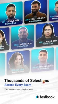 टेस्टबुक के साथ SSC, रेलवे, बैंकिंग, टीचिंग, डिफेन्स, UPSC और राज्य PSC जैसी सरकारी परीक्षाओं की तैयारी करें। यह आपकी सफलता के लिए बेहतरीन मंच है, जहाँ आप कभी भी, कहीं भी सीख सकते हैं और अभ्यास कर सकते हैं।
