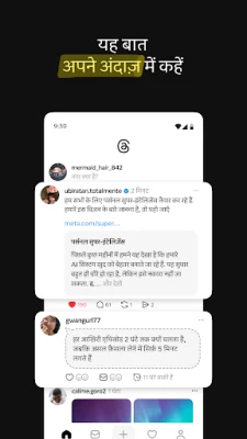 Threads पर प्रवेश करना बेहद सरल है; बस अपने Instagram यूज़रनेम का उपयोग करें और देखें कि आपका वेरिफ़िकेशन बैज भी यहाँ आपके लिए सुरक्षित रखा गया है। कुछ ही टैप में, आप उन सभी खातों को स्वचालित रूप से फ़ॉलो कर सकते हैं जिन्हें आप Instagram पर पसंद करते हैं और साथ ही नए, दिलचस्प प्रोफाइल भी खोज सकते हैं। चाहे वह नवीनतम संगीत रिलीज़ हो, फ़िल्मों का प्रीमियर हो, खेल जगत की हलचल हो, टीवी शो की समीक्षा हो, फैशन के रुझान हों या किसी नए उत्पाद की घोषणा हो – Threads आपको अपनी राय साझा करने और एक नई बहस शुरू करने के लिए आदर्श मंच प्रदान करता है।