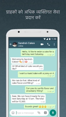 समय बचाएं और अपने संचालन को सुव्यवस्थित करें। WhatsApp Business आपको स्वचालित तेज़ जवाब भेजने, ग्राहकों के अनुपलब्ध होने पर संदेश सेट करने और महत्वपूर्ण बातचीत को लेबल के साथ आसानी से व्यवस्थित करने की सुविधा देता है। अपने ग्राहकों को विशेष ऑफ़र, नवीनतम समाचार या उत्पादों के बारे में अपडेट साझा करने के लिए स्टेटस का उपयोग करें। इतना ही नहीं, यह ऐप आपको ग्राहकों को सीधे ऐप के भीतर ऑर्डर और भुगतान स्वीकार करने की सुविधा देकर एक सहज खरीदारी अनुभव प्रदान करने में भी सक्षम बनाता है। ये उपकरण सुनिश्चित करते हैं कि आप कभी भी किसी व्यावसायिक अवसर को न चूकें।