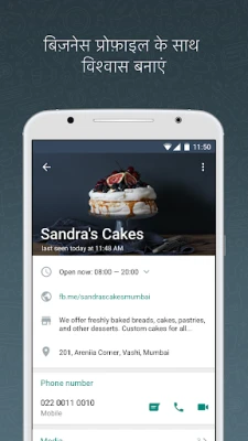 अपने ब्रांड के लिए मजबूत संबंध बनाएं और ग्राहकों का विश्वास जीतें। एक पेशेवर व्यापार प्रोफ़ाइल स्थापित करके अपनी विश्वसनीयता प्रदर्शित करें, जिससे ग्राहक आपके साथ व्यापार करने में अधिक सहज महसूस करें। लक्षित ऑफ़र भेजकर अपनी बिक्री को बढ़ावा दें, ऐसे विज्ञापन बनाएं जो ग्राहकों को सीधे WhatsApp Business पर लाएं, और अपनी पूरी उत्पाद सूची आसानी से प्रदर्शित करें। अपनी प्रामाणिकता को और भी मजबूत करने के लिए Meta Verified सब्सक्रिप्शन का लाभ उठाएं, जो आपको पांच डिवाइस तक जुड़े रहने की सुविधा भी प्रदान करता है (Meta Verified के साथ 10 तक), जिससे आप कहीं भी, कभी भी अपने व्यवसाय का प्रबंधन कर सकते हैं। यदि आपके पास दो अलग-अलग मोबाइल नंबर हैं, तो आप अपने व्यक्तिगत WhatsApp खाते के साथ-साथ अपना व्यावसायिक खाता भी एक ही डिवाइस पर चला सकते हैं।