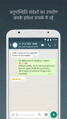 WhatsApp Business ऐप बिज़नेस के लिए खास टूल्स लाता है। यह आपको ग्राहकों से स्मार्ट तरीके से जुड़ने, उनका भरोसा जीतने और अपने बिज़नेस को बढ़ाने में मदद करता है। स्वचालित जवाब, चैट लेबल और स्टेटस अपडेट जैसे फ़ीचर आपकी व्यावसायिक बातचीत को अधिक प्रभावी बनाते हैं।